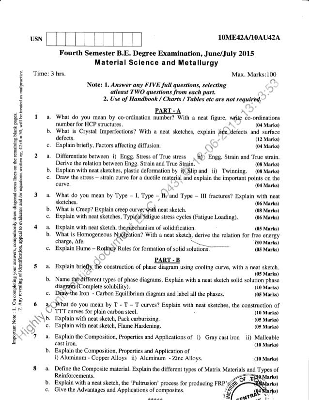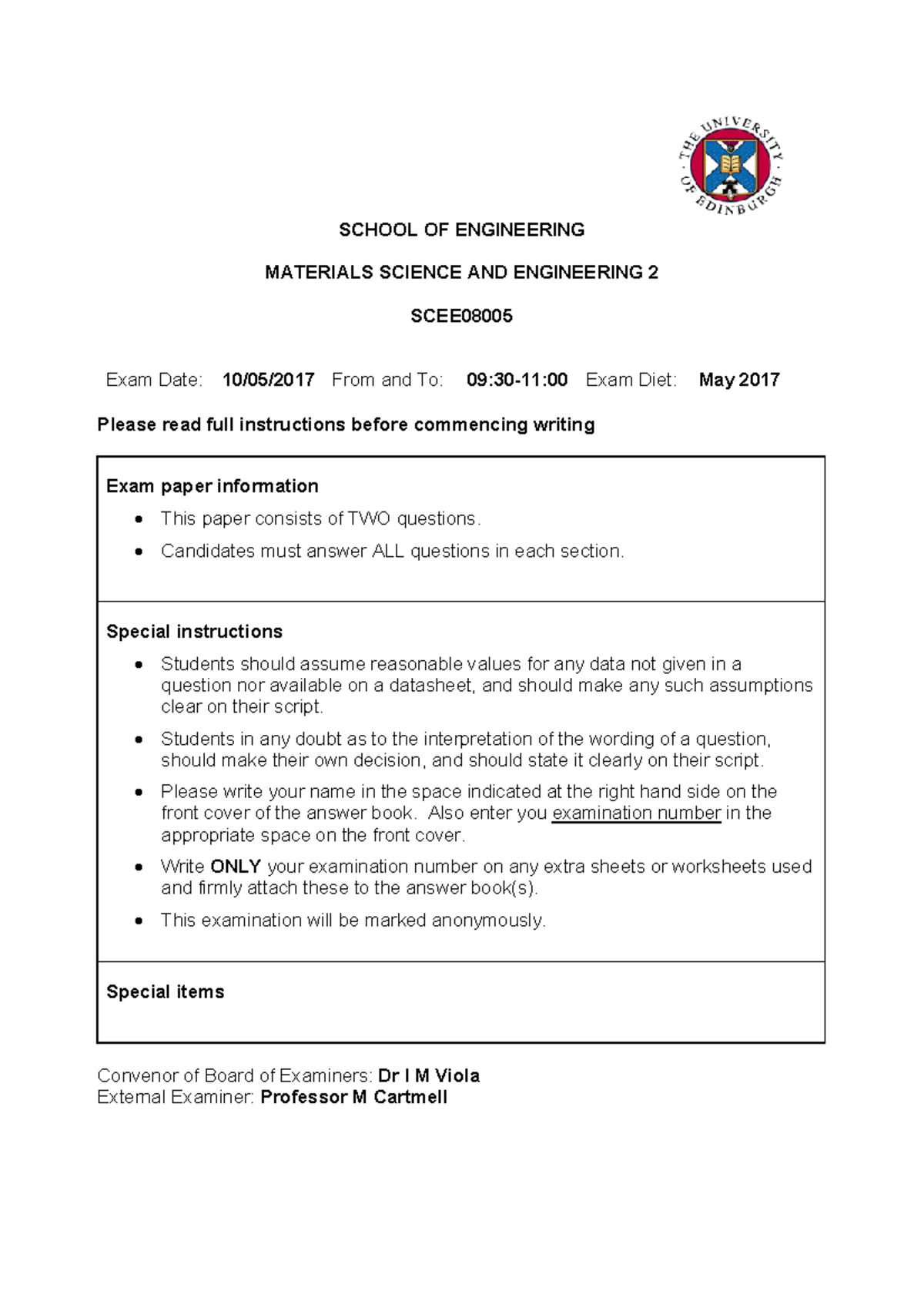 Exam 8 May 2017, questions - Materials Science and Engineering 2